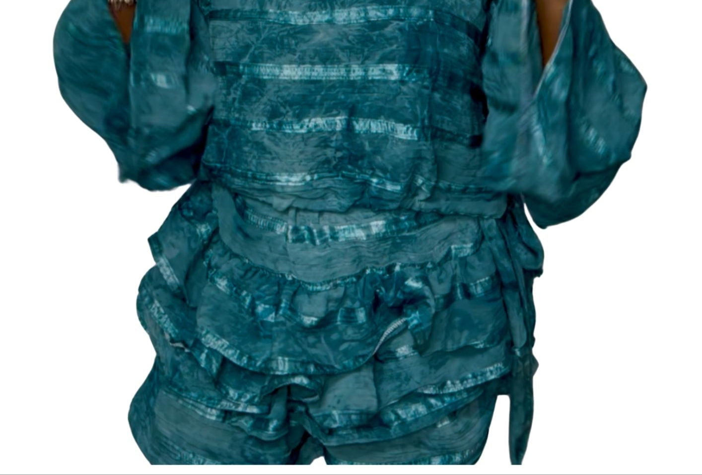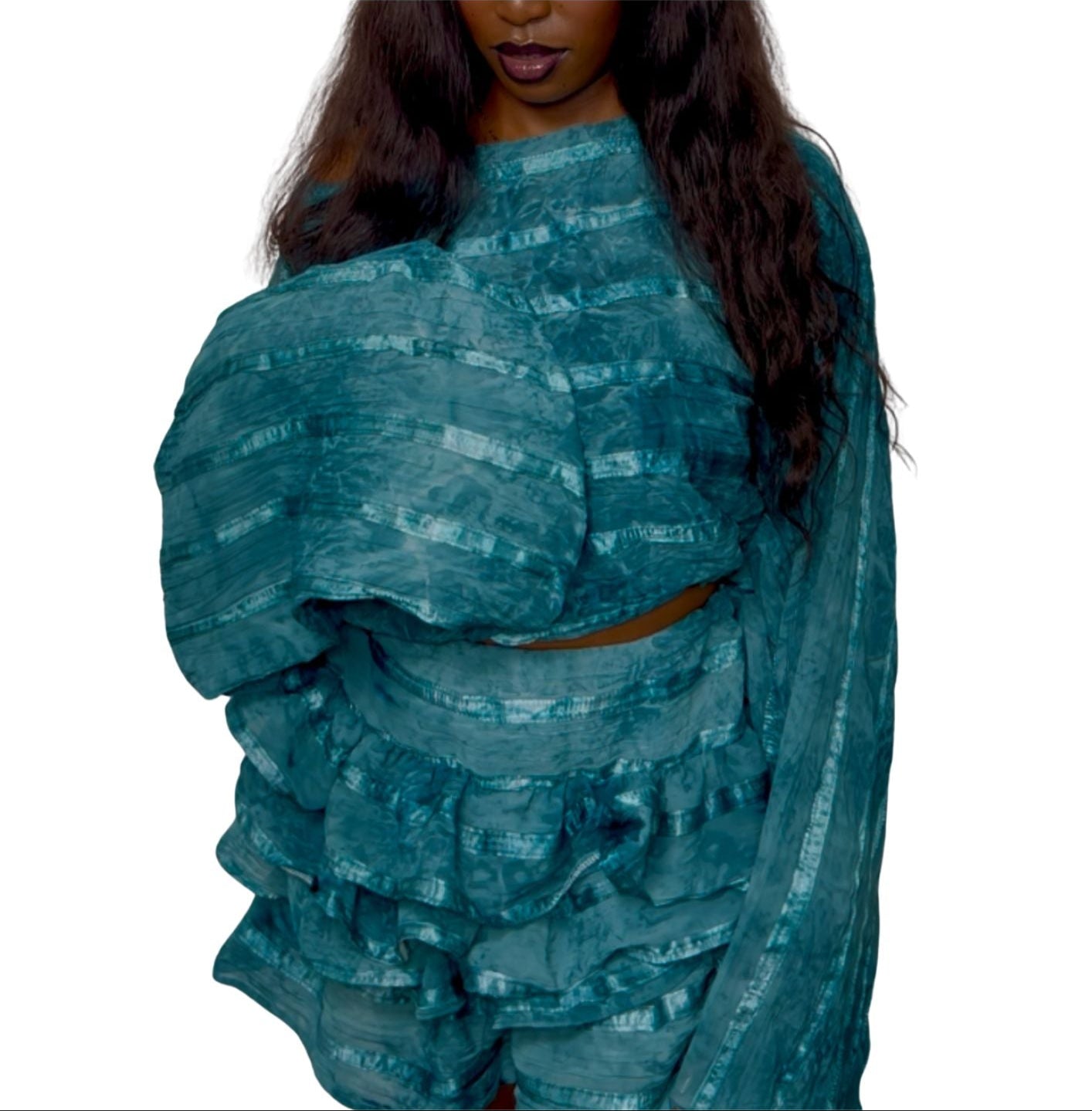 The off-shoulder drape gives soft drama, while the ruffled mini skirt brings movement with every step (or twirl - your choice) Wear it together when you want to serve a full look or style each piece solo so sprinkle a bit of chaos into your everyday wardrobe.